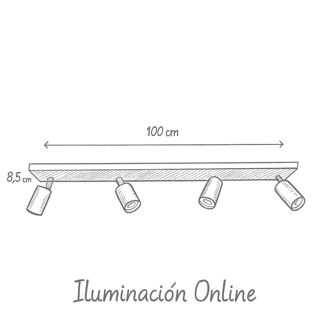 Su estructura lineal de 100 cm de largo x 8 cm de ancho integra cuatro cabezales orientables de 10 cm x 6,5cm, que permiten direccionar la luz con precisión hacia puntos de interés.