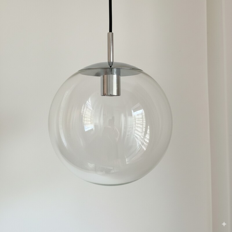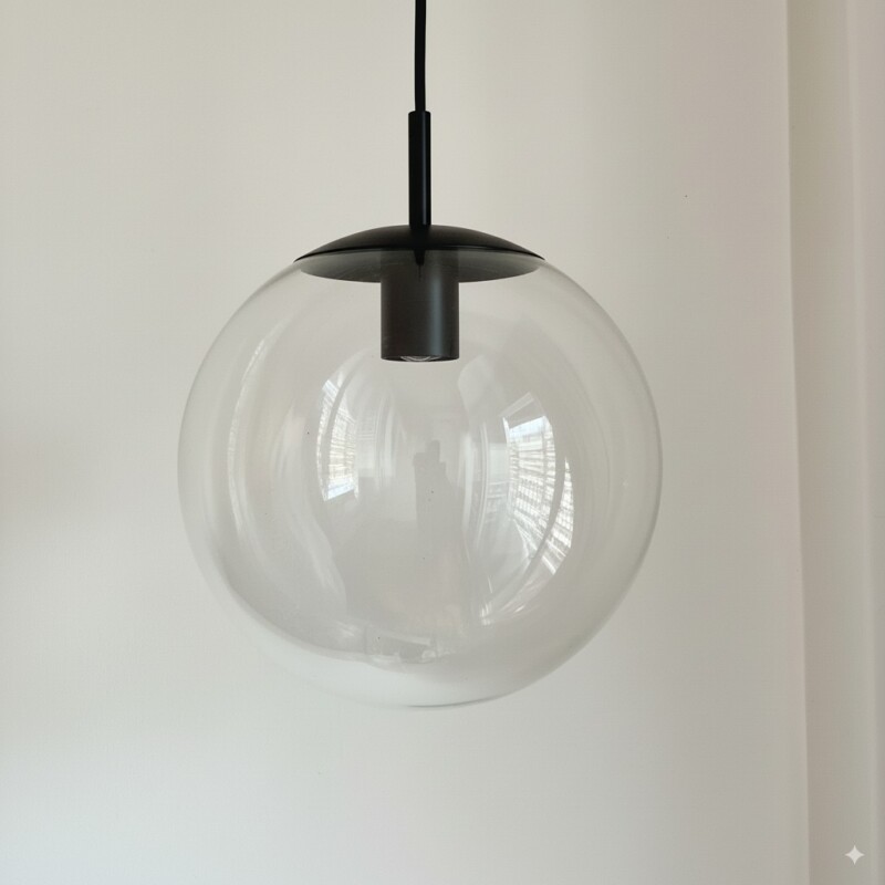 Colgante de 1 luz con tulipa de vidrio Transparente.
