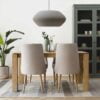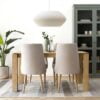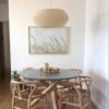 Su superficie tramada crea un delicado efecto lumínico, ideal para generar atmósferas cálidas y elegantes en comedores, livings, quinchos o recepciones.