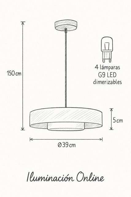 Lámparas: 4 x G9 dimerizables (NO incluidas)