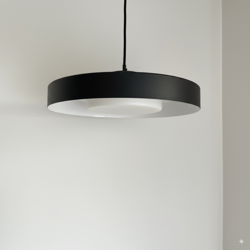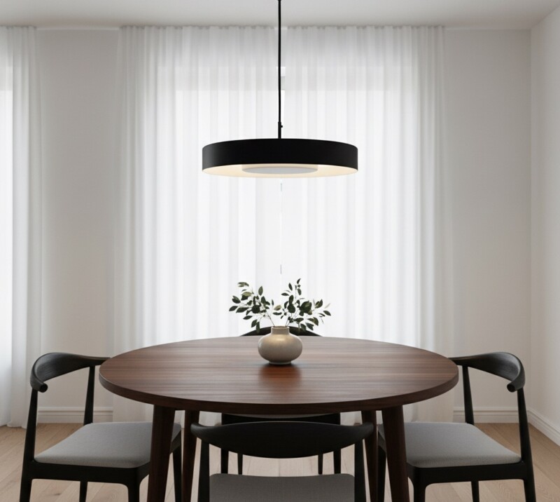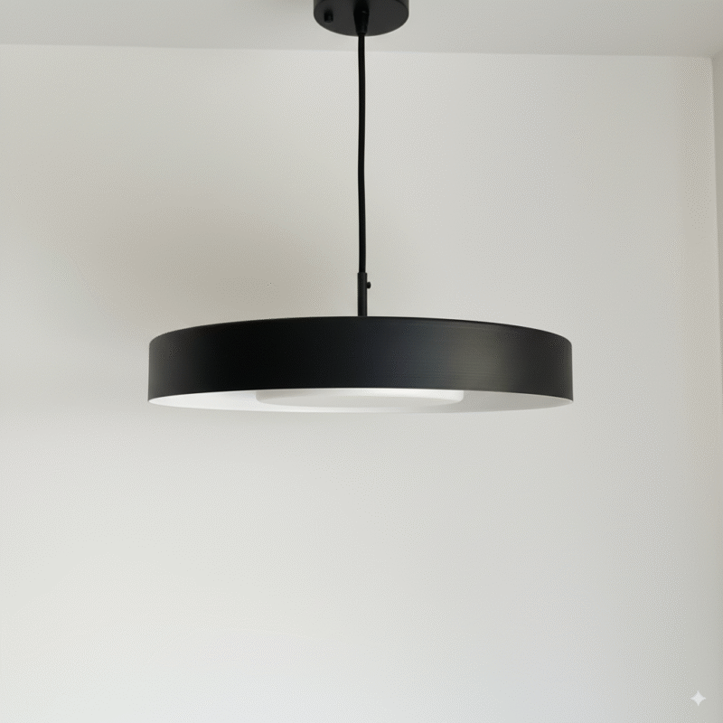 El colgante York combina una estética sobria y sofisticada con materiales de alta calidad, ideal para ambientar comedores, livings o espacios de diseño contemporáneo. Su estructura circular de 39 cm de diámetro encierra una tulipa central de vidrio opal, que suaviza la luz y genera una atmósfera cálida y envolvente.