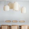 Esta elegante lámpara de diseño contemporáneo está confeccionada mediante técnicas de impresión 3D combinadas con madera. Se ofrece en un extenso rango de dimensiones y en cinco tonalidades distintas: blanco, beige, gris suave, gris intenso y negro.