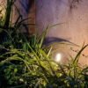 Luminaria decorativa con estaca de 30cm para uso interior o exterior fabricada en aluminio, spot de material compuesto y led de filamento integrado de 1w de potencia, 2700K y 100 Lumens. Son Eléctricas, funcionan a 220v.