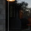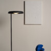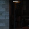 Lámpara de pie de luz semi directa. Pantalla en aluminio. Difusor de metacrilato esmerilado. Cable eléctrico blanco o negro con interruptor de pie.