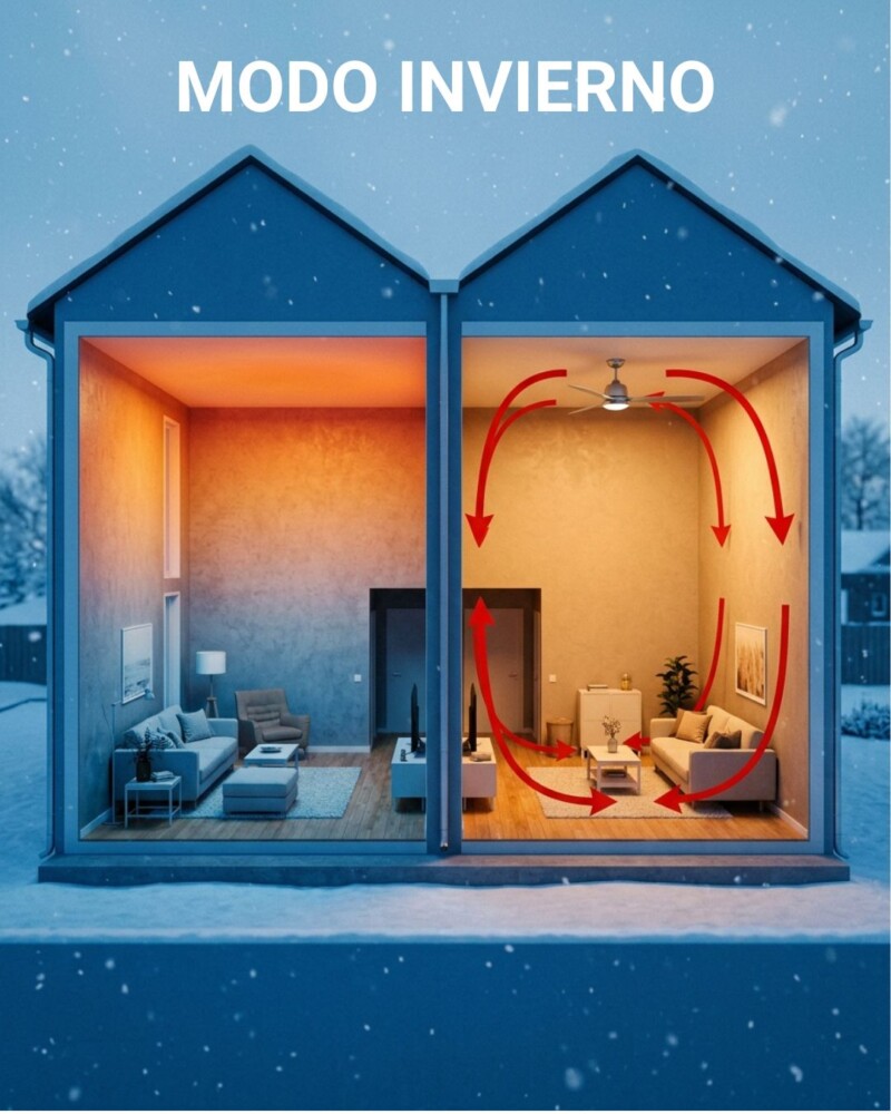 Adaptá el sentido de giro según la estación. En verano, genera una brisa refrescante hacia abajo; en invierno, redistribuye el aire cálido hacia el suelo para una mejor eficiencia térmica.