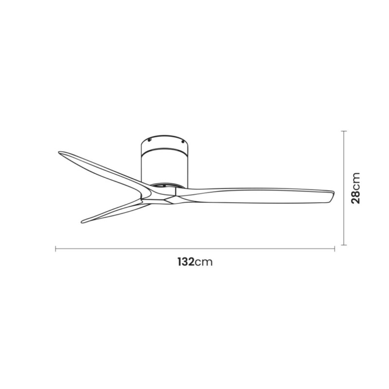 Diseño funcional con una estética atemporal. Este ventilador de techo de 3 aspas de madera maciza y estructura metálica combina elegancia natural y tecnología de vanguardia. Con un diámetro de 132 cm, es ideal para ambientar espacios con estilo sin necesidad de luminaria integrada.